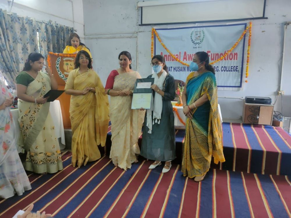 Annual Award Function for the session 2019-20 was organised today on 23.10.21 at Karamat Husain Muslim Girls' P.G. College, Lucknow. The Chief Guest and College Principal, Mrs. Saher Hussain addressed the students with her encouraging words and felicitated the awardees.