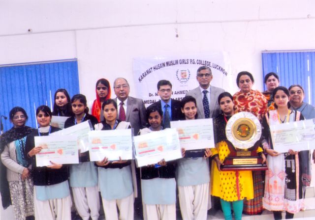 Archana Rawat of B.AIII won the Governor's Running Trophy and was also awarded the Nasreen Ahmed Memorial Gold Medal for obtaining the highest marks in Medieval and Modern History in the college. Tarannum Fatima, Ayushi Pandey and Shazia Asgar of B.AII; Kajal Yadav, Humaira Salmani and Ruchi Yadav of B.AI, were awarded the Dr. Nasreen Ahmed Memorial Scholarship for obtaining the highest marks in the college in B.AII and B.AI respectively. Sadiya Khatoon of B.AIII was awarded the Umme Habiba Memorial Gold Medal and Scholarship, and also Prof. Shamim Nikhat Memorial Urdu Gold Medal and Scholarship for securing the highest marks in Urdu in B.AIII in the college. Iqra Rizwan Warsi of B.AI and Mariya Khatoon of B.A. II were awarded the Prof. Shamim Nikhat Memorial Urdu Scholarship and Begum Nuzhat Kidwai Memorial Scholarship for securing the highest marks in Urdu in B.AI and B.AII in the college. Tanzina Khan was awarded Laiqun Nissan Shafiq Memorial Gold Medal for being the meritorious student in the B.Ed Department.